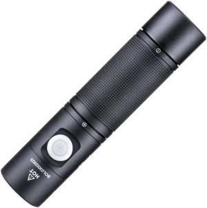 4.38″ overall. Water resistant. Impact resistant. Strobe. Rechargeable. Modes: High (1400 lumens, 3h 30m runtime); Medium (420 lumens, 5h 30m runtime); Low (25 lumens, 100h runtime). 200m beam distance. Requires (1) 18650 battery (included). Aluminum construction. Color: Black. Boxed.