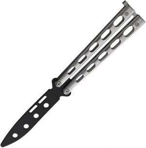 5″ (12.7cm) closed. 3.63″ (9.22cm) black powder coated unsharpened 440 stainless blunt tip blade. Stainless handle. Boxed.