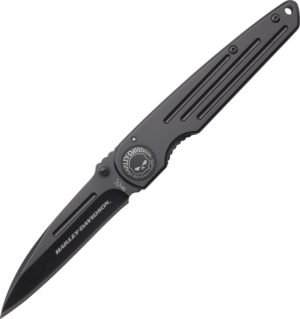 Tec X Framelock Series. 3.25. 4.5″ (11.43cm) closed. Black finish stainless blade. Black grooved stainless handle. Thumb stud. Blade etching. Inlay shield. Lanyard hole. Pocket clip. Boxed.