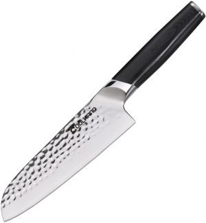 12″ (30.48cm) overall. 7″ (17.78cm) hammered finish 440C stainless blade. Black G10 handle. Boxed.