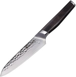 9.5″ (24.13cm) overall. 5″ (12.7cm) hammered finish 440C stainless blade. Ebony wood handle. Boxed.