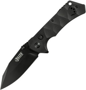 4.75″ (12.07cm) closed. 3.5″ (8.89cm) black finish D2 tool steel blade. Black sculpted G10 handle. Extended tang. Lanyard hole. Thumb stud. Pocket clip. Boxed.