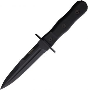 This knife celebrates the battle of Case Grizzano which took place on 19th April 1945 between the paratroopers of Nembo and the German 1^ Division Fallschirmjäger “Green Devils”, a 12 hours extremely cruel and bloody hand-to-hand blade skirmish. Notwithstanding the WWII was going to the end in few days and one third of paratroopers fell on the battlefield, Nembo won this fierce battle. NIMBUS is much more than an event celebrating model, the knife has been developed on the technical point of view to be actually used for the purposes of a modern combat operator. Particular care has been spent on the technical characteristics as dimensions, shape and kydex sheath to be carried in such different tactical ways. The tactical blade is light and compact for an easy use by a skilled operator. Key features of Extrema Ratio Nimbus Operativo Knife (5.5″): * 10.38″ (26.37cm) overall. * 5.5″ (13.97cm) black MIL-C-13924 burnished Bohler N690 stainless spear point blade. * Black Forprene handle. * Steel guard. * Black Kydex MOLLE compatible belt sheath. * Boxed.