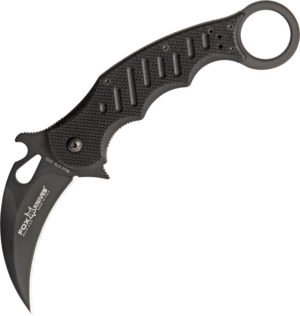 5 1/4″ closed linerlock. 3″ black non-stick coated N690Co Cobalt Vanadium stainless blade with thumb slot and extended tang. Black G-10 handles with black finish stainless pocket clip. Integrated finger hole.