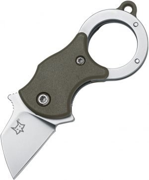 3.13″ (7.95cm) closed. 1″ (2.54cm) sand blast finish 4116 stainless blade. OD green FRN handle. Extended tang. Finger ring. Keyring. Pocket clip. Comes with nylon Mini-Ta keyring. Boxed.