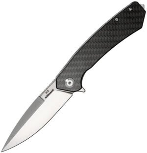 4.75″ (12.07cm) closed. 3.38″ (8.59cm) satin finish D2 tool steel blade. Carbon fiber handle with stainless back handle. Extended tang. Glass breaker. Pocket clip. Ruslan Skimen design. Boxed.