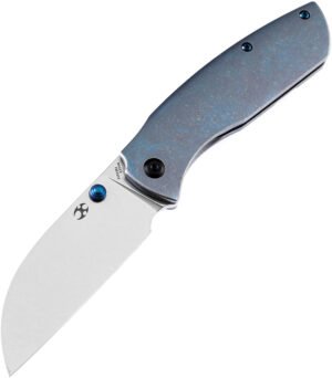 4.25″ (10.8cm) closed. 3.25″ (8.26cm) satin finish S35VN stainless blade. Blue anodized titanium handle. Thumb stud. Pocket clip. Black nylon pouch. Boxed.