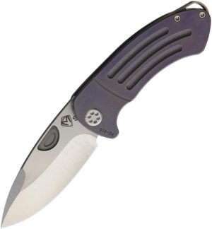 This Theseus model features a Purple anodized titanium handle and frame with a satin finish S35VN stainless drop point blade. The Theseus, named after the hero who vanquished the Minotaur in ancient Greek mythology, is built in true Medford style. This model sports a tumbled satin finish S35VN stainless drop point blade with a stepped thumb groove and extended tang to facilitate quick one-handed operation. Key Features of Medford Theseus Knife Purple (3.63″): * 4.63″ closed. * 3.63″ satin finish S35VN stainless drop point blade. * Purple anodized titanium handle. * Lanyard hole. * Pocket clip. * Extended tang. * Watertight case. * Boxed. Please note: Blade steel may change without notice, depending on availability of materials at time of manufacture.