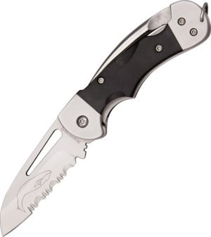Professional Series. 3 5/8″ closed linerlock. 2 1/2″ German Pro Marine stainless three-quarter serrated sheepsfoot blade with shackle slot. Black G-10 handles with stainless bolsters and 1 7/8″ stainless marlin spike. Features patented DoubleLock (securely locks blade, spike, or both). Lanyard hole with keyring. Stainless pocket clip with slot cutout design. Black nylon belt sheath. Serial numbered. Hang packaged.