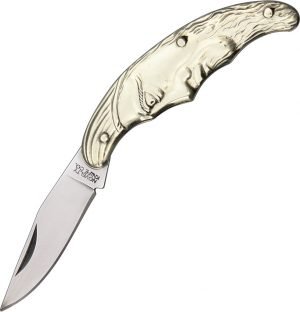 2.5″ (6.35cm) closed. 1.63″ (4.14cm) blade. Sculpted solid nickel silver handles in the shape of Man in the Moon.