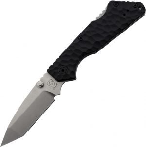 4.75″ (12.07cm) closed. 3.5″ (8.89cm) stonewash finish stainless tanto blade. Black sculpted G10 handle. Pocket clip. Lanyard hole. Thumb stud. Boxed.