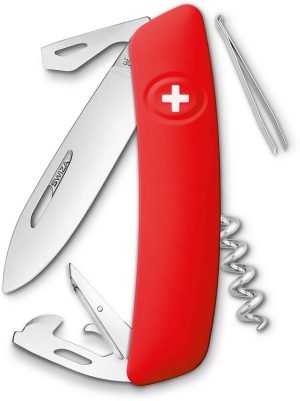 Closed: 3.75″; Blade: 2.875″ l 440 Stainless l Standard Edge; Handle: Red l Synthetic; Additional Tools: Large Blade l Can Opener l Large Screwdriver l Small Screwdriver l Bottle Opener l Corkscrew l Tweezers l Reamer l Corkscrew l Reamer l Large Screwdriver; Boxed.