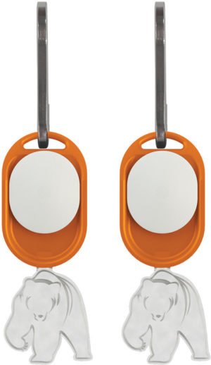 2.5″ overall. Weather resistant plastic housing. White LED. Metal clip. Bear shaped globe. Use as a zipper pull or clip to a key chain. Requires (2) CR1220 batteries (included). Hang packaged.