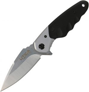 4.25 (10.8cm) closed. 3.25 (8.26cm) satin finish 8Cr13MoV stainless blade. Black G10 handle. Aluminum bolster(s). Extended tang. Lanyard hole. Pocket clip. Clam packed.